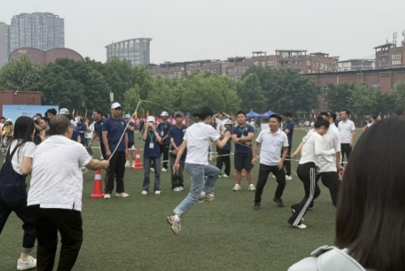 远选手奋力一跃,以干净利落的动作刷新纪录,成绩令人瞩目;教职工团体项目中,接力队员默契配合,单